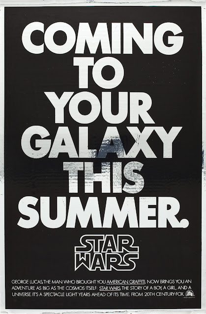 The second version of the Advance poster on regular paper features the standardized “W” used today. The modification was made by ILM conceptual artist Joe Johnston after it was decided that the original didn’t work well in the pan shot that was initially planned for the opening credits.