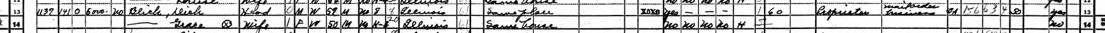 In the 1910 census, Blick had returned to Galesburg. He and his mother lived with his sister, Bertha, and her husband and head of the household, William Mowat. Their address was 1055 West Main Avenue. Blick was a window trimmer for a dry goods store.