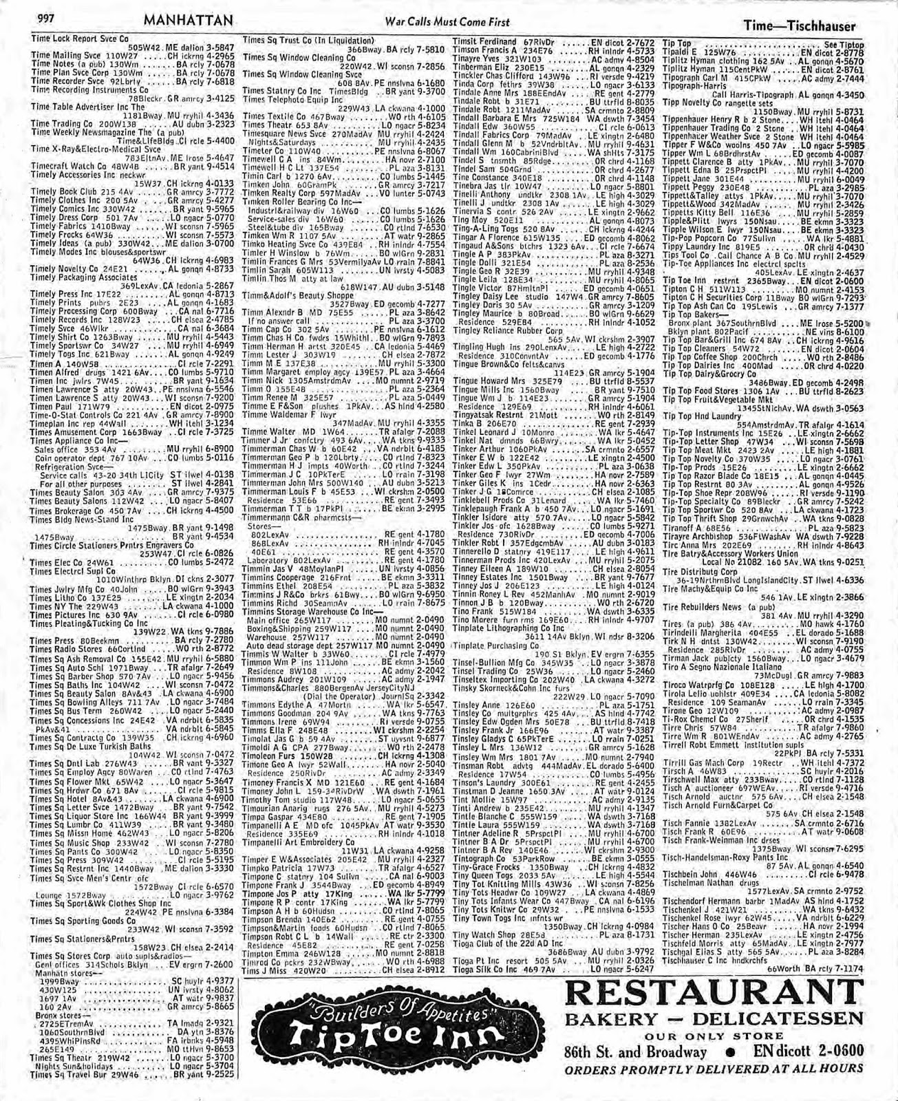 Summer–Fall 1943, New York Telephone CompanyPage 395: Goodman Martin pubr 350 5 Av…….BR yant 9-5965