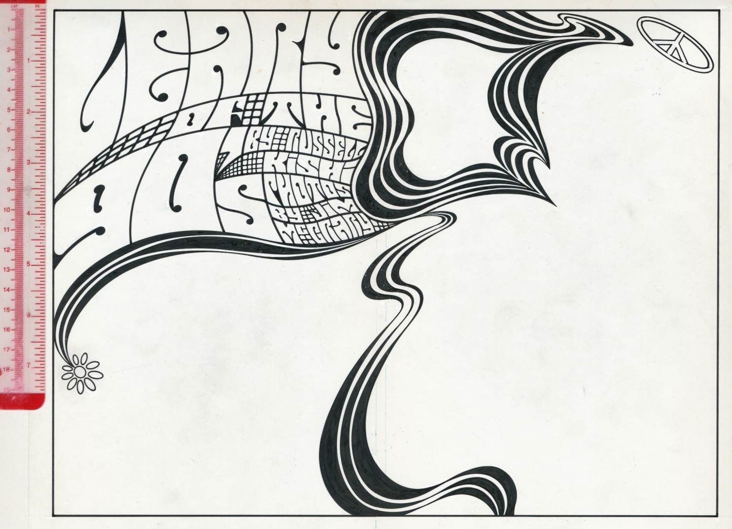 I secured the ink drawing to the back of a sheet of one-ply, vellum bristol board. The logo was drawn in pencil. I used white gouache to make corrections.
