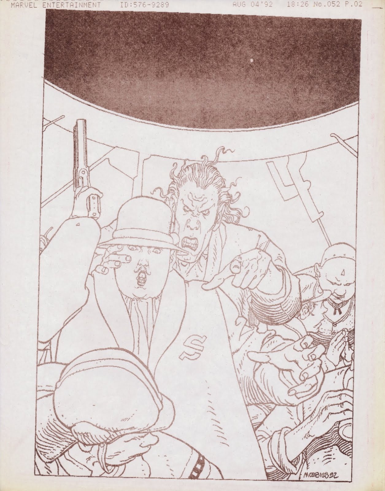 I few days later I received fax of the cover design, which had the diameter of the circle, positions of the DC bullet in the upper lefthand corner and the subtitle and credits. The squiggly lines represent background art.