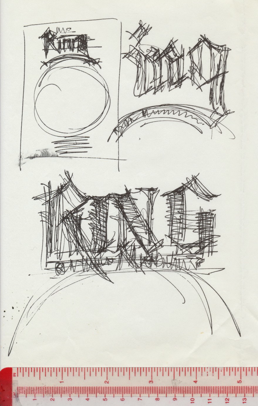 I assembled six versions of the logo: four with the Wilhelm Klingspor Gotisch and Goudy Text fonts, and two with Bradley. These designs were faxed to Keith Wilson.