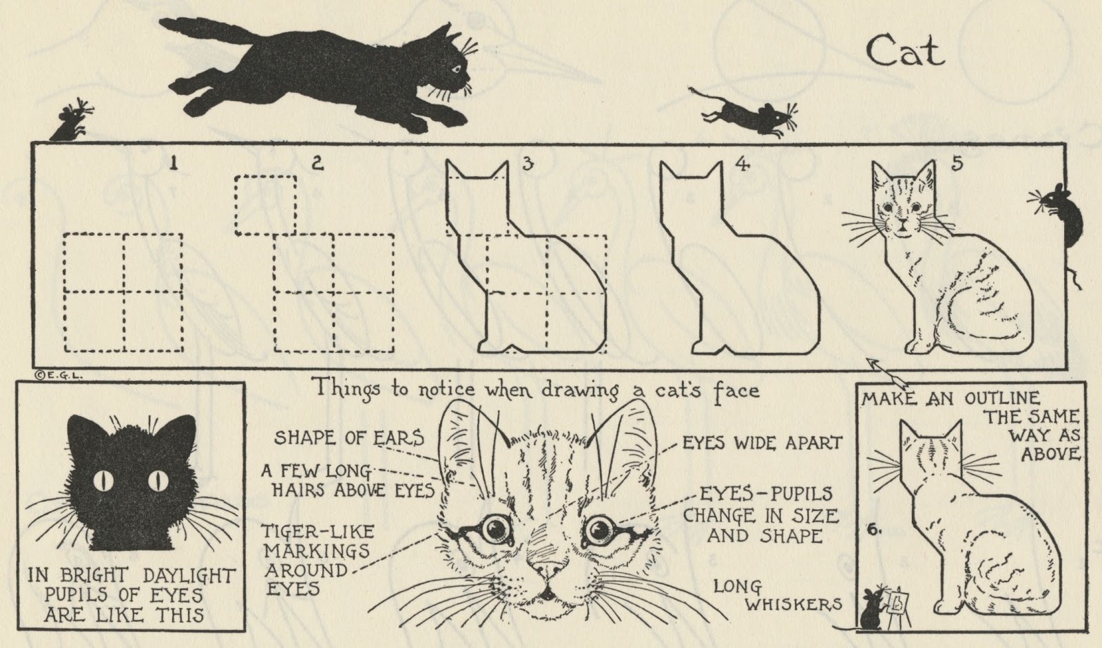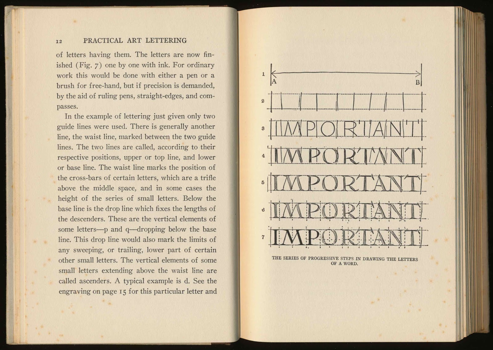 A sheet of vellum was placed over the photostat. A variety of French curves and ellipse templates were used to do the inking. Corrections were made with white gouache. The artwork measures 9.875 by 9.375 inches / 25 by 23.8 centimeters. The image below was scanned twice and stitched together; the alignment is slightly off on the right side of “The”.