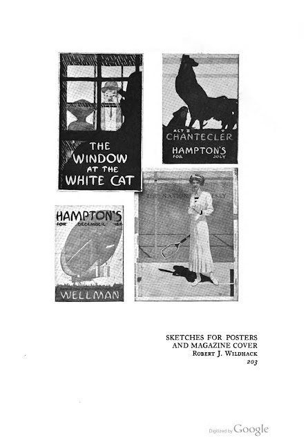 At an exhibition of posters held at the National Arts Club some time ago I was particularly impress with the work of Wildhack. The name was new to me and I made inquiries concerning him. I learned nothing more, however, than that he was quite young and that he had studied in the French school. While Mr. Wildhack’s work shows French influences it is at the same time quite original. No idea of its quality can be given by these reproductions in black and white. His designs are always in color, two tints, seldom more. It is the swish of his brush, the chic and the atmosphere that gives his work its distinction.