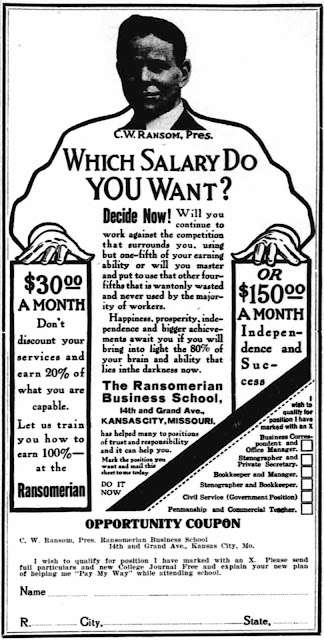 In the 1920 census, Ransom’s Kansas City address was 3927 Euclid Avenue. He continued to operate a school.