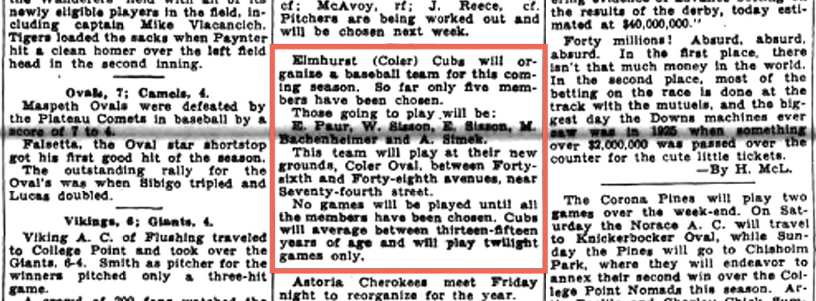 This team will play at their new grounds, Coler Oval, between Forty-sixth and Forty-eighth avenues, near Seventy-fourth street.