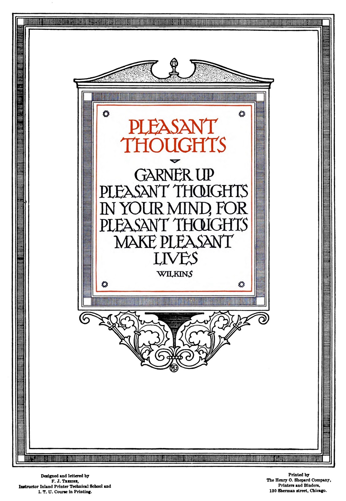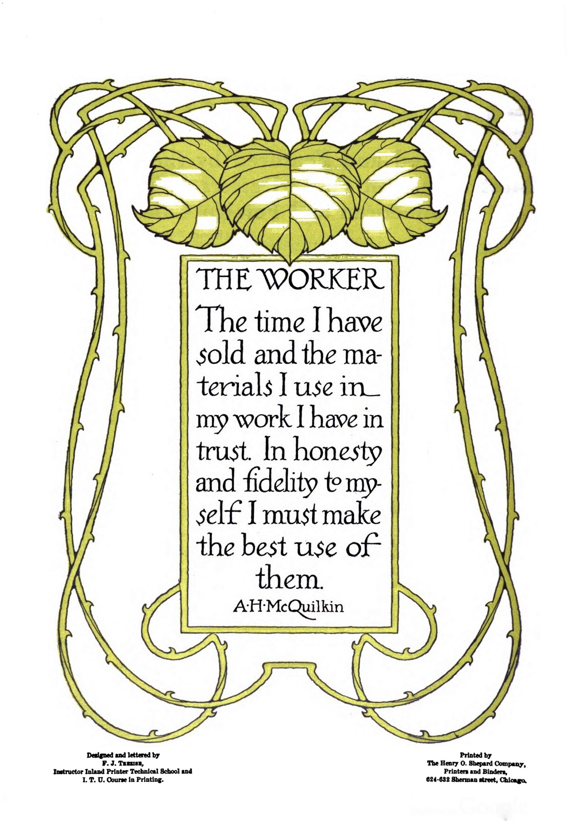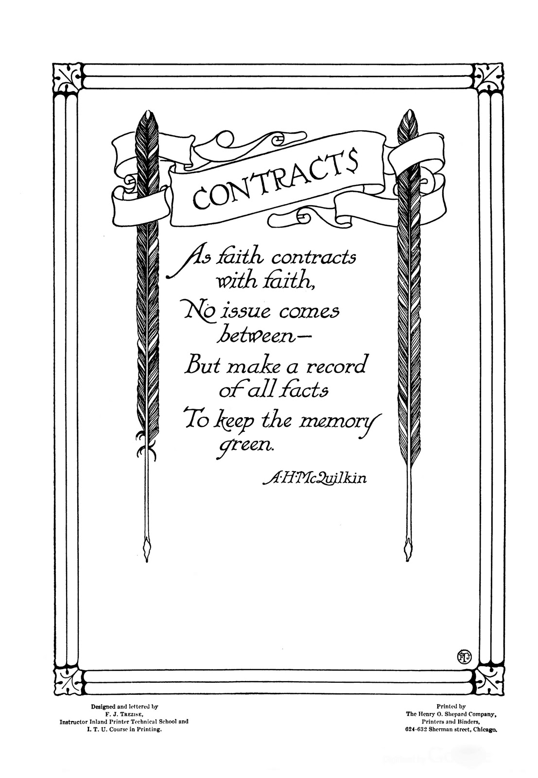 …Mr. Trezise’s work is illuminative and inspiring...Mr. Trezise is the most successful and most practical instructor of printers in the whole history of the craft. He numbers his enrolled paying pupils by the thousands, while others, like this writer, are firing in the air more or less, or teaching a few dozens here and there. His instruction has added greatly to the earning capacity of his pupils. Those who are benefited indirectly by Mr. Trezise’s articles and books are also very numerous. By all means read everything Mr. Trezise writes, because he has the inborn faculty of teaching. With his whole heart in the work, a graduate himself from the type-case, modest and diligent, this young man who acquired his advanced knowledge in the night art and technical classes of Chicago—one of those who, “while their companions slept, were toiling upward in the night”—is laying the foundation of a great fame for himself in the histories of printing and of industrial education. —Henry Lewis Bullen